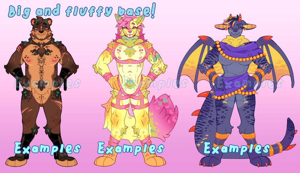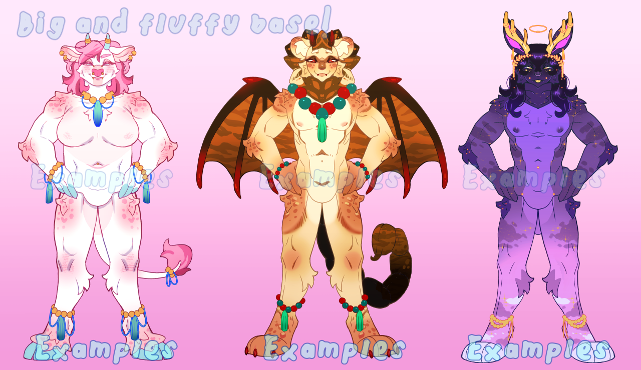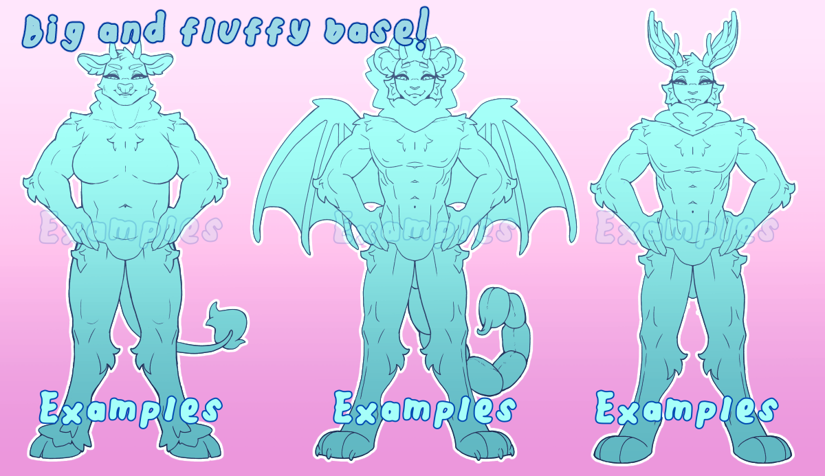 This fullbody lineart base, focused on big and fluffy muscular male and females, can be used for personal use as well as selling adopts, commissions, games or visual novels!